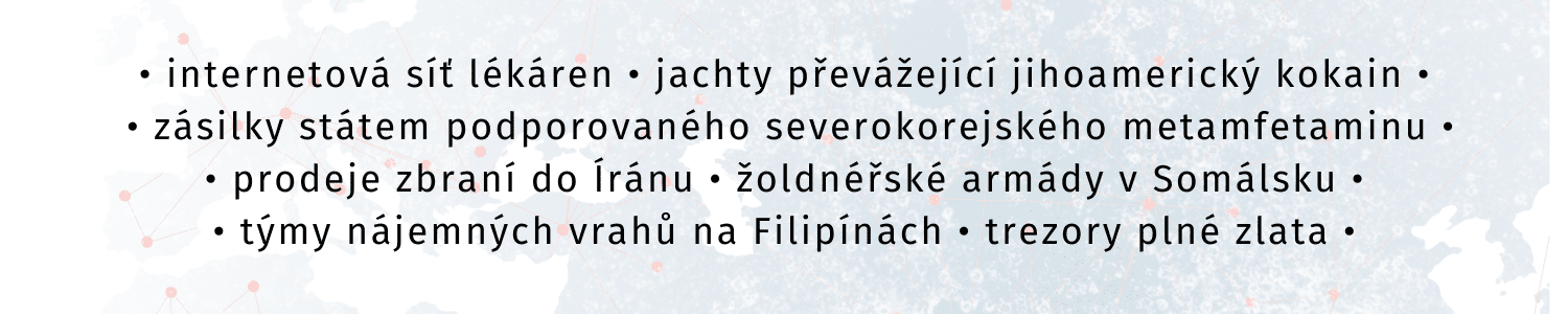 Celé to začalo jako internetová síť lékáren vydávajících léky na předpis, která dodávala americkým zákazníkům analgetika v hodnotě stovek milionů dolarů. Zanedlouho se z tohoto byznysu stal nadnárodní konglomerát zapojený do téměř všech myslitelných aspektů zločineckého chaosu. Jachty převážející kokain, trezory plné prutů zlata, zásilky metamfetaminu, obchodování se zbraněmi v Íránu, žoldnéřské armády v Somálsku nebo týmy nájemných vrahů na Filipínách.